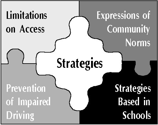 The Training Center has created a framework for understanding the effective prevention strategies that are available to prevent underage alcohol use. The framework divides strategies into four types that can be seen as interrelated pieces of the prevention puzzle.